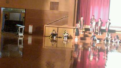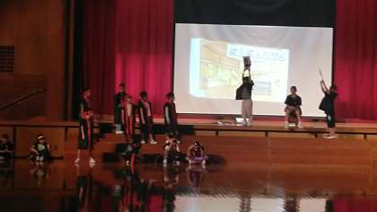2年生は、1時間目に体育館で表現発表会の練習をしていました。一つ一つのシーンで、動きや姿勢等の確認をしていました。