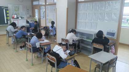 4年1組の1時間目は、理科の学習でした。太陽とかげの動きのところのテストをしていました。