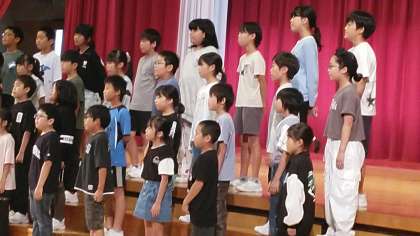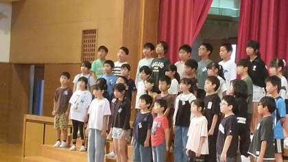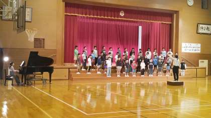 3・4年生は、2時間目に体育館で表現発表会の練習をしていました。まずは1曲目の「やあ!」です。