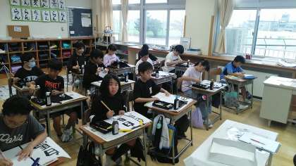 4年2組の4時間目は、書写の学習でした。「白馬」という文字を書いていました。
