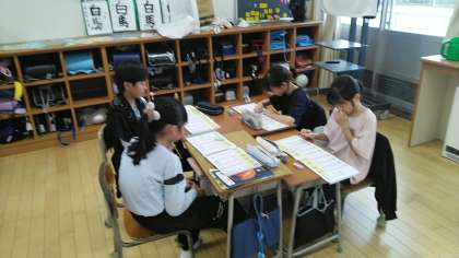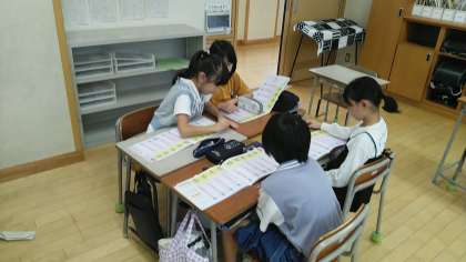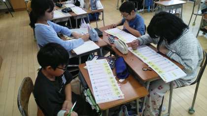 4年1組の4時間目は、国語科の学習でした。漢字ドリルを使って、グループごとに漢字練習を進めていました。