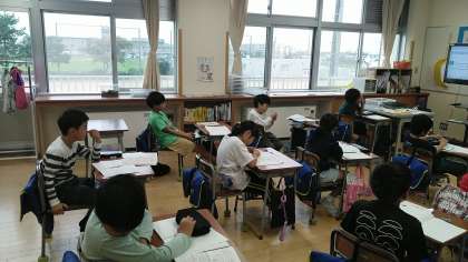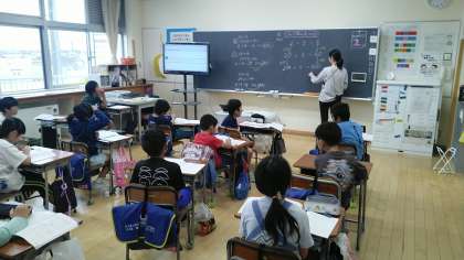 3年生の4時間目は、算数科の学習でした。元の数を10倍、100倍したときの答えがどうなるかについて、式を比べて考えていました。