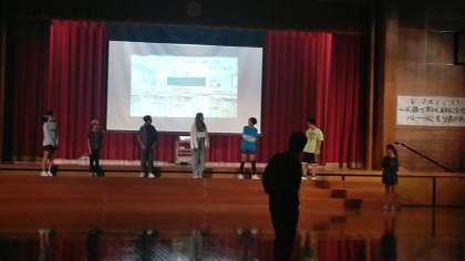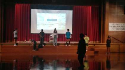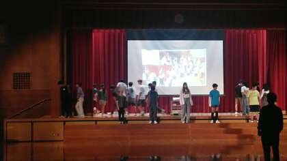 6年生は、5時間目に体育館で表現発表会の練習をしていました。動きの確認をしていました。