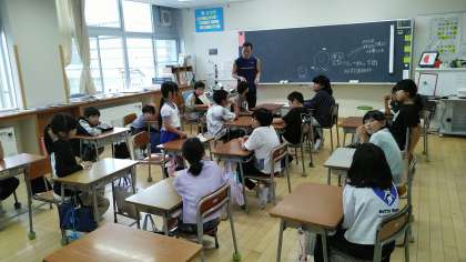 4年1組の5時間目は、聞きあいの時間でした。友達の意見をみんな一生懸命聞いていました。