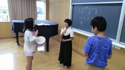 5年生の5時間目は、音楽科の学習でした。グループでリズムアンサンブルをしていました。