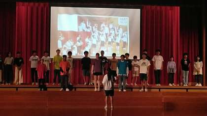 6年生は、5時間目に体育館で小学校生活最後の表現発表会の練習をしていました。
