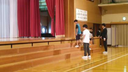 劇と劇の合間に6年生が舞台を整えています。