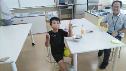 つばめ野級2組は、5時間目に「ゼリー」をつくっていました。1人ずつ担当を決め、「グレープ」と「オレンジ」の2種類のゼリーをつくっていました。校長室にもどうぞと届けてくれました。ありがとうございます。おいしくいただきました。