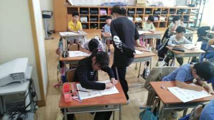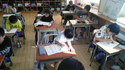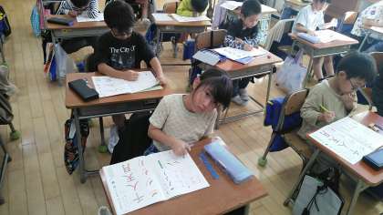 2年生の5時間目は、書写の学習でした。「千」や「人」、「天」という文字の練習をしていました。