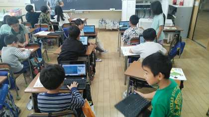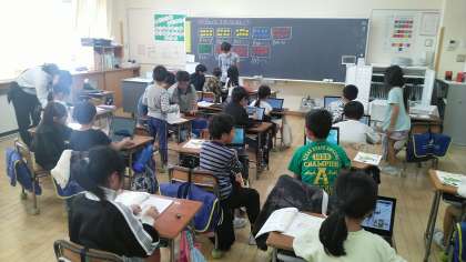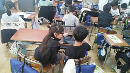 2年生の3時間目は、算数科の学習でした。九九を完ぺきに覚える練習をしていました。動画を見たり、音楽を聴いたりしながら覚えていました。
