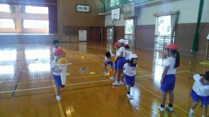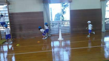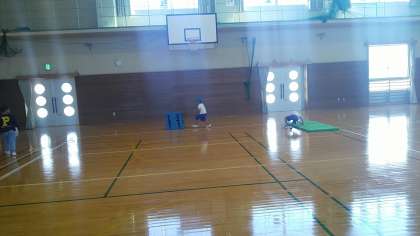 1年生の3時間目は、体育科の学習でした。ボールを運んだり、けんけんぱーをしたり、ろくぼくに登ったりするなど、楽しくレースをしていました。