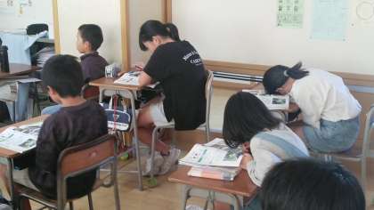 5年生の5時間目は、理科の学習でした。流れる水のはたらきについて、画像を見ながら考えていました。