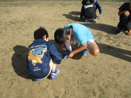 理科の学習では、先週使い方を学んだ放射温度計を使って、日なたと日かげの地面の温度を測りました。「全然違う!」とそれぞれの温度の差に驚いていました。