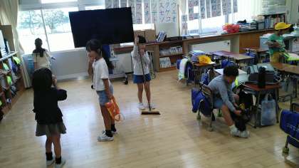 1年生教室では、今日も掃除をしてくれていました。