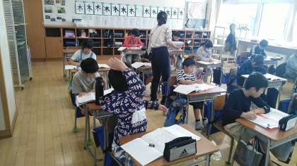 3年生の1時間目は、算数科の学習でした。くりあがりに気を付けて問題を解いていました。