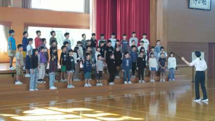 2時間目に体育館で、3・4年生は合唱練習をしていました。いよいよ今日はオーバードホールで区域連合音楽会です。