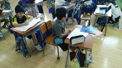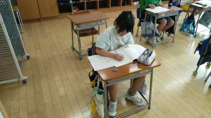 3年生の1時間目は、国語科の学習でした。「ちいちゃんのかげおくり」の学習をしていました。ちいちゃんの心情の変化について、折れ線グラフの様にして考えていました。