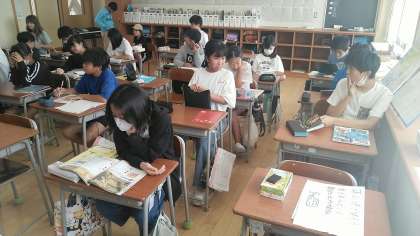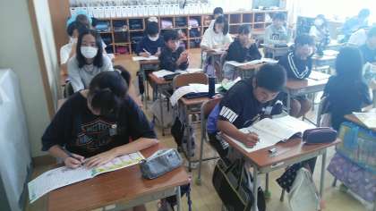6年生の2時間目は、自分たちで学習を進める時間でした。ドリルやクロームブック、資料集、ノート等を使って、自分が学習したいことをしていました。