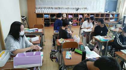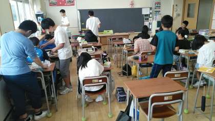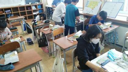 6年生の3時間目は、図画工作科の学習でした。テープカッターがそろそろ完成に近付いていました。