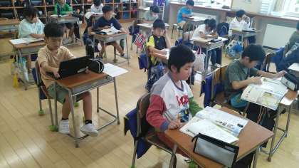3年生の5時間目は、理科の学習でした。地面の温度のところのまとめをしていました。