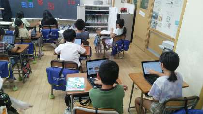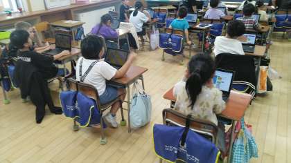 2年生の5時間目は、算数科の学習でした。クロームブックで動画を見ながら、かけ算九九を覚えていました。
