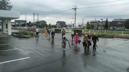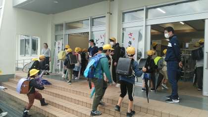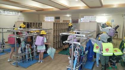 今朝の児童玄関の様子です。雨の日です。寒くなってきましたが、子供たちの挨拶は元気です。