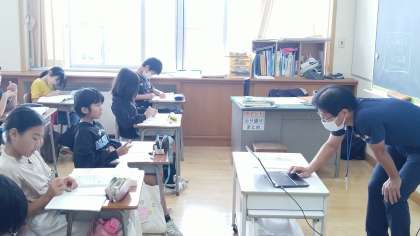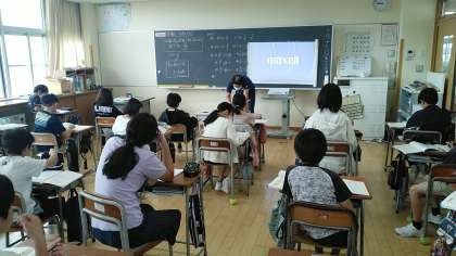 5年生の1時間目は、算数科の学習でした。分数についてみんなで考えていました。