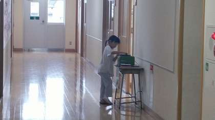 今日も黒板消しをクリーナーできれいにしてくれていました。