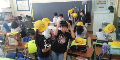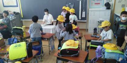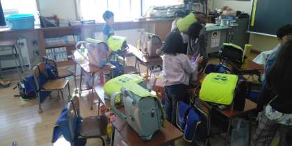 5時間目の終わり頃に1年生教室に行くと、帰りの用意をしていました。
