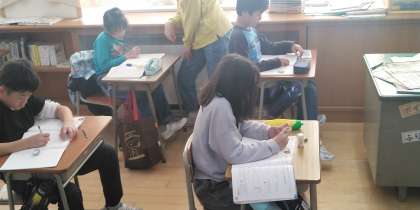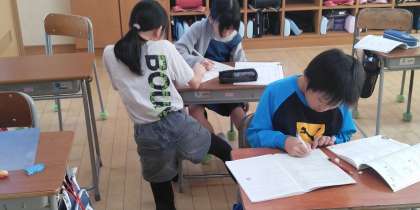 5年生の5時間目は、算数科の学習でした。小数を分数にする方法について確認していました。
