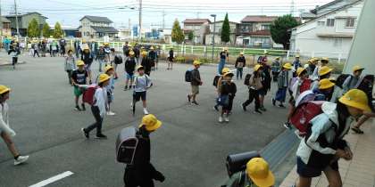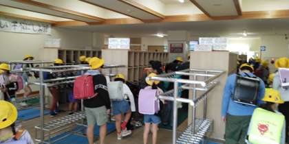 今朝の児童玄関の様子です。今日も子供たちの挨拶は元気です。