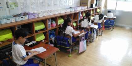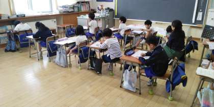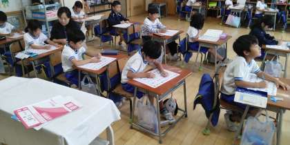 1年生の2時間目は、国語科の学習でした。カタカナのプリントを丁寧に書いていました。