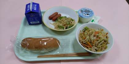 10月22日(火)の給食 公開日 2024/10/22 更新日 2024/10/22 学校から 今日の給食です。 【献立】 コッペパン 牛乳 あらびきウインナー 大根サラダ 焼きそば ヨーグルト です。