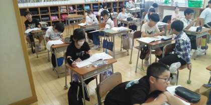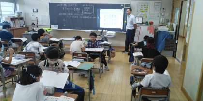 4年1組の1時間目は、算数科の学習でした。がい数を使った計算をしていました。