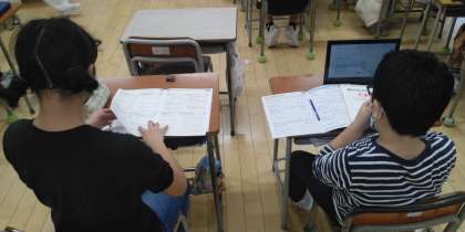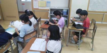 4年2組は、6時間目にドリルの丸付けをしていました。