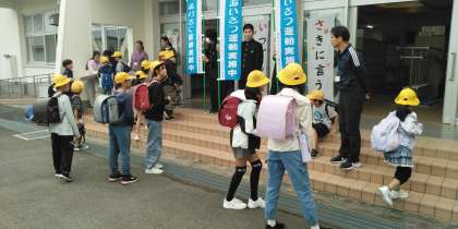 今朝の児童玄関の様子です。今日も和合地区小中学校PTA連絡協議会の小中学校合同挨拶運動の日でした。中学生やPTA役員の皆さんと一緒に挨拶運動をしました。中学生の皆さん、PTA役員の皆さん2日間どうもありがとうございました。