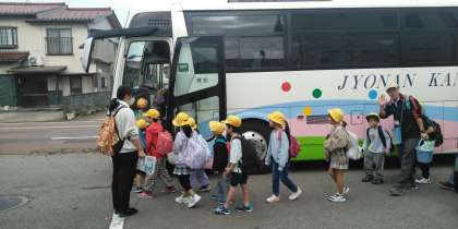 1・2年生が校外学習に行ってきます。バスに乗って、魚津水族館とミラージュランドに向かいました。校外学習中の様子は、後程。