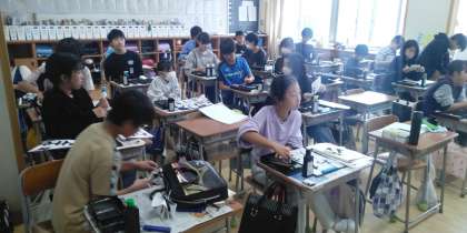 6年生の1時間目は、書写の学習でした。「ひまわり」という文字を練習していました。