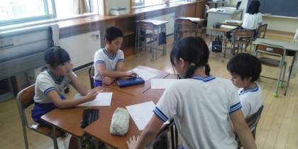4年2組は、1時間目に話し合いについて学習していました。グループごとに話し合いたいことを決めて、どう話し合いを進めるのかを考えていました。