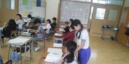 4年2組の5時間目は、国語科の学習でした。伝えたいことを習字でかく計画を立てているそうです。伝えたいことは、何かな?