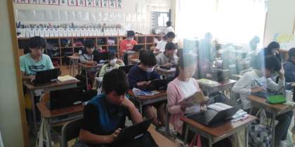 6年生の4時間目は、社会科の学習でした。戦国時代の武将を選んで一人一人が調べていました。