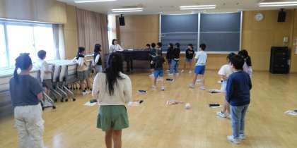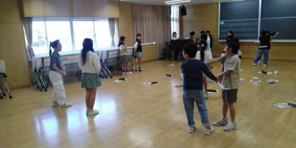 4年2組の4時間目は、音楽科の学習でした。「なべなべ底抜け〜」と歌いながら遊んでいました。