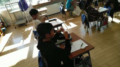 3年生の5時間目は、算数科の学習でした。紙テープの1/4を一人一人がつくっていました。