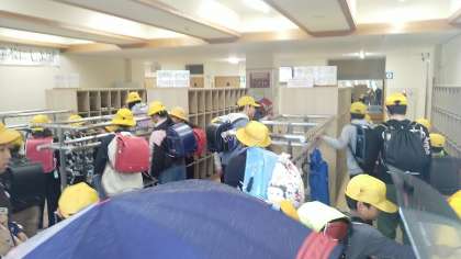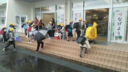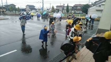 今朝の児童玄関の様子です。雨の朝です。雨ですが元気に挨拶してくれる子供がたくさんいました。
