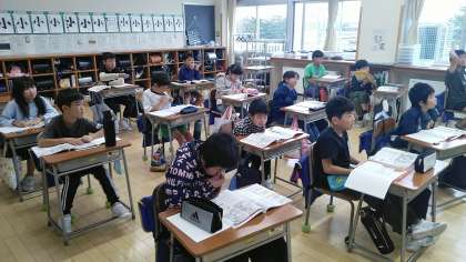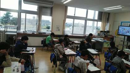 3年生の3時間目は、社会科の学習でした。火災の絵を見て、消防士や消防車の特徴を発表していました。
