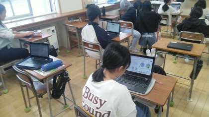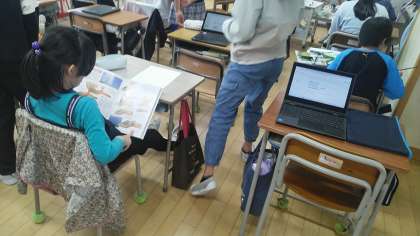 5年生の3時間目は、総合的な学習の時間でした。「食」について一人一人が調べていました。