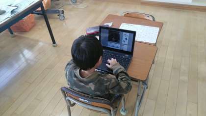 つばめ野級2組の1年生は、1時間目にクロームブックでタイピング練習をしていました。ずいぶん早く打てるようになっていました。