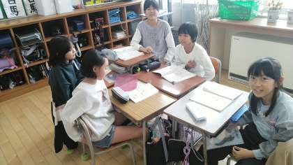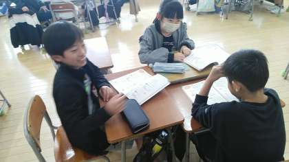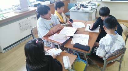 4年1組の4時間目は、算数科の学習でした。班ごとに問題を解きながら学習を進めていました。