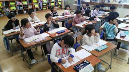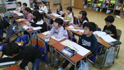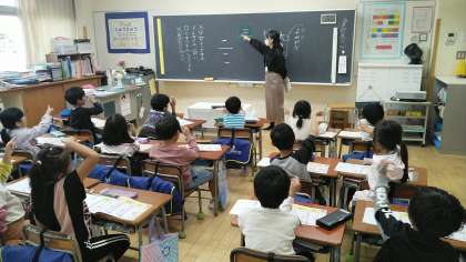 1年生の5時間目は、国語科の学習でした。ちょうど「三」という漢字の練習をしていました。