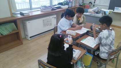 4年1組の5時間目は、算数科の学習でした。「計算の約束」のところの練習問題を解いていました。